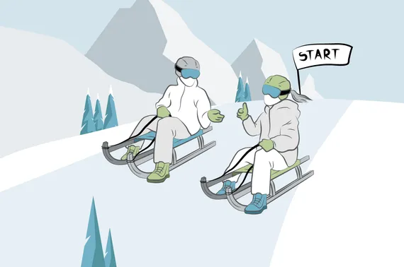 Auf andere Rodler*innen Rücksicht nehmen ist für einen unfallfreien Rodelspaß sehr wichtig. Dabei gilt es auch immer nach vorne zu schauen, um für alle Vorkommnisse bereit zu sein und reagieren zu können.