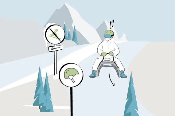 NIE auf Skipisten rodeln: Das Rodeln auf Skipisten ist verboten!